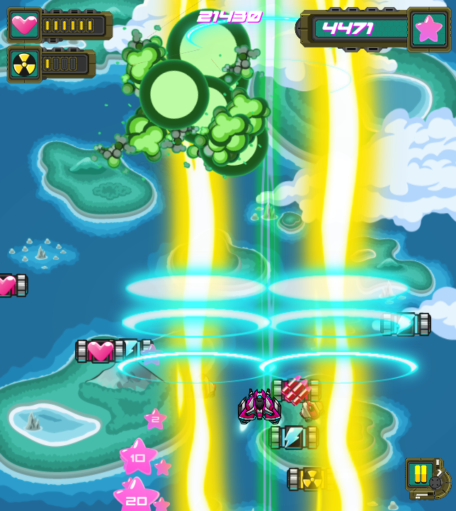 Thanks for the praise, I know a good number of high quality Japanese shmups I'd love to match some days. This game is just a hobby result nowhere as good, but yeah it tries hard.